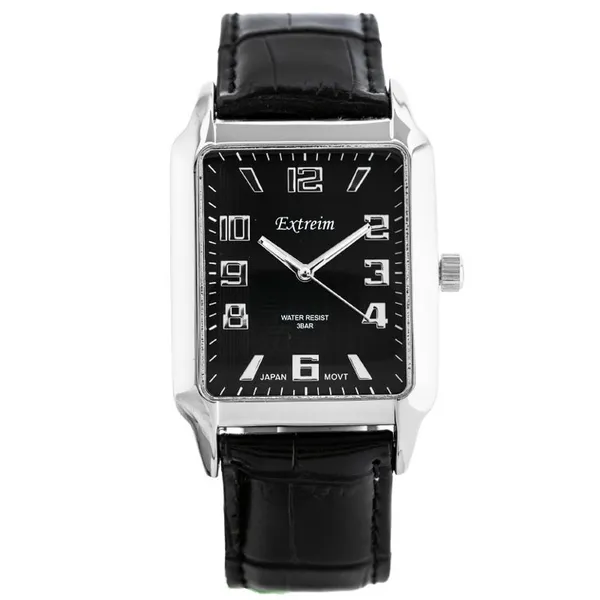 • Extreim női kvarc karóra fekete számlappal, ezüst téglalap tok, textilszíj