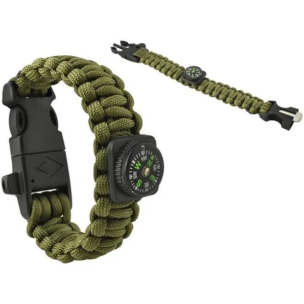 • 5 az 1-ben paracord túlélő karkötő — zöld, kés, tűzkő, síp, iránytű