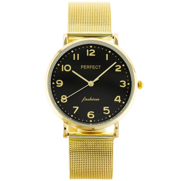• Női karóra Perfect F332, arany mesh szíj, fekete számlap, 36 mm
