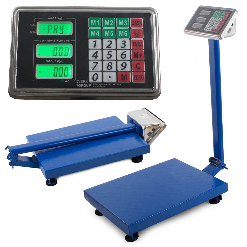 • Elektronikus bolti platform mérleg LCD kijelzővel, akkumulátorral, 1kg-tól 300kg-ig, kék