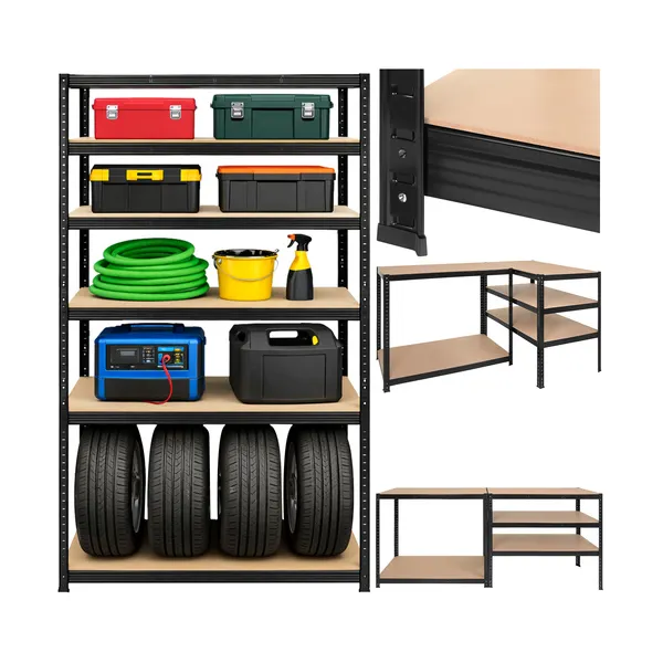 • Fekete fém raktári polc 180×100×60 cm, teherbíró tárolóállvány