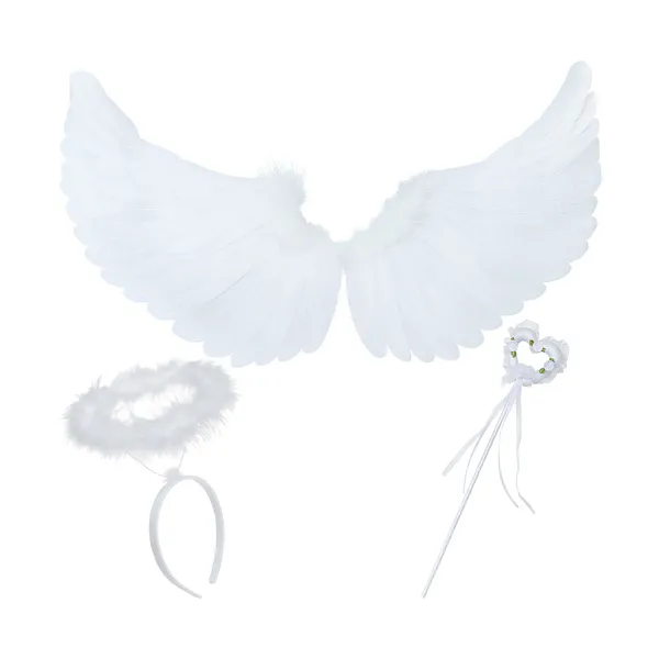 • Fehér, 3 részes angyalszárny készlet 60×34 cm glóriával és pálcával
