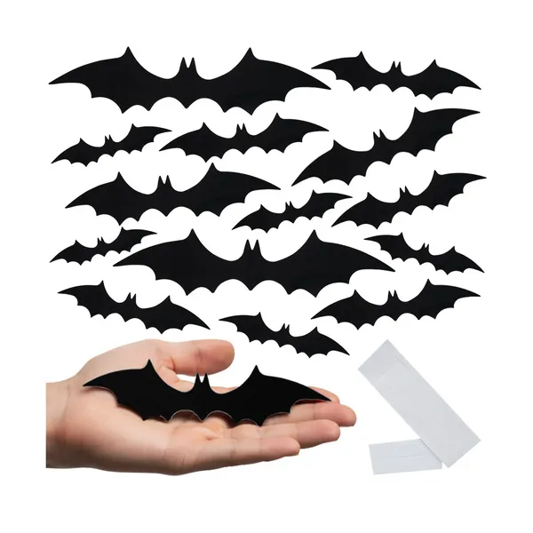 • 3D denevér falmatrica készlet 56 db, fekete PVC, öntapadós Halloween dekor