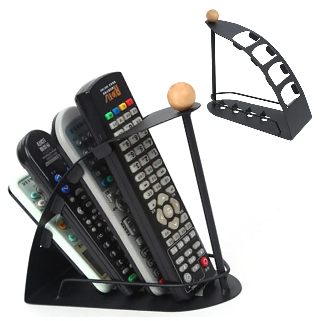• Fém távirányító-, telefontartó fa díszítéssel, 4 rekesszel, XXL 20,5cm x 10cm x 21cm, fekete