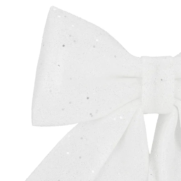 • Springos fehér csillámos dekoratív karácsonyi masni dróttal 17×20 cm