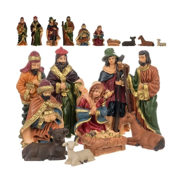 • Betlehemi figurakészlet 10 db, 4–10 cm, többszínű gyanta