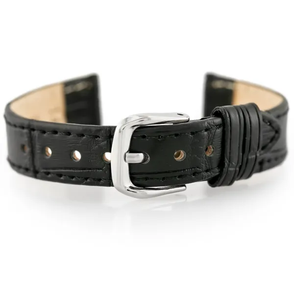 • Fekete természetes bőr óraszíj ezüst csattal 18 mm