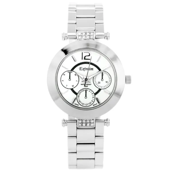 • Női ezüst karóra fehér számlappal, kvarc, WR30, ásványi üveg