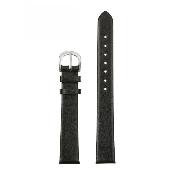 • Fekete természetes bőr óraszíj ezüst csattal 14 mm