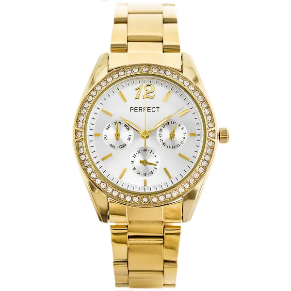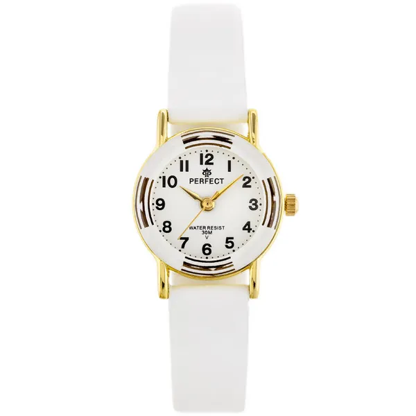 • Perfect lány karóra elsőáldozásra, fehér bőrszíj, arany tok