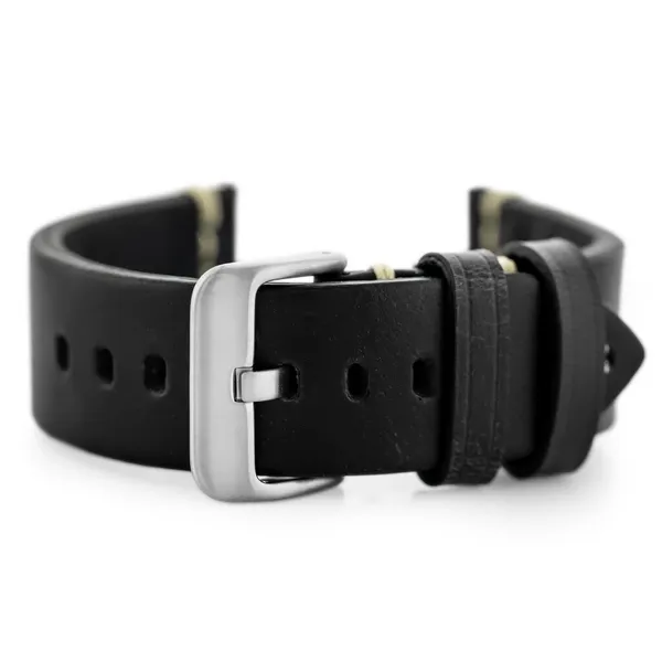 • Fekete valódi bőr óraszíj fehér varrással, 24 mm