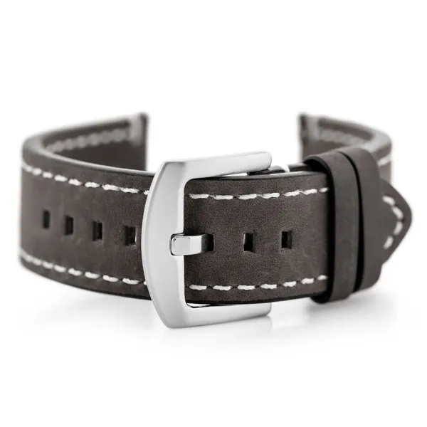 • Szürke természetes bőr óraszíj fehér varrással 20 mm