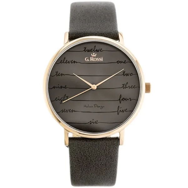 • Női kvarc karóra grafitszürke bőrszíjjal, rózsaarany tokkal