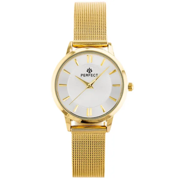 • Perfect női кварc karóra, aranyszínű fém szíj, ezüst számlap