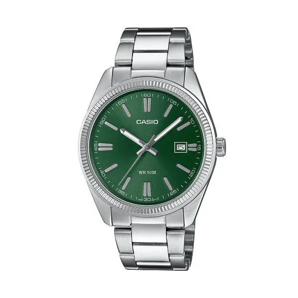 • Férfi Casio kvarc karóra, zöld számlappal, acél szíjjal, 38 mm