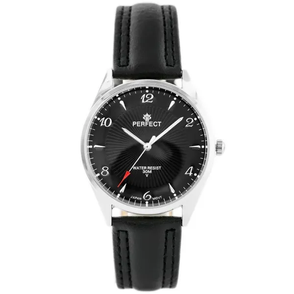 • Férfi kvarc karóra fekete bőrszíjjal, hosszú szíj, ezüst tok