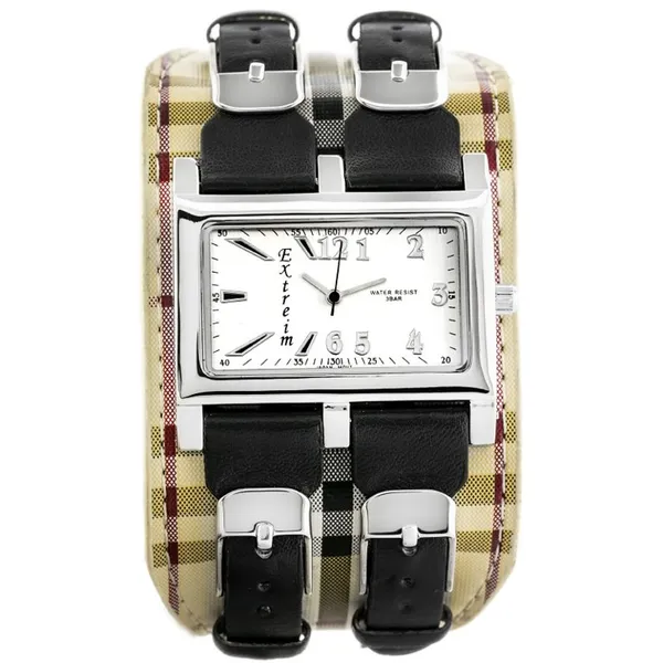 • Női кварc karóra téglalap alakú tokkal, ezüst számlappal