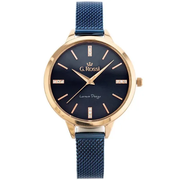 • G. Rossi női кварц karóra kék számlappal, fém szíjjal