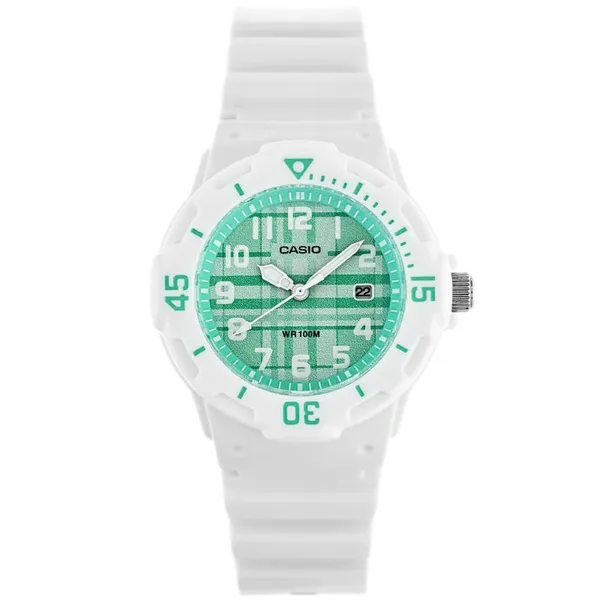 • Női Casio LRW-200H karóra, zöld számlap, fehér szíj, WR100