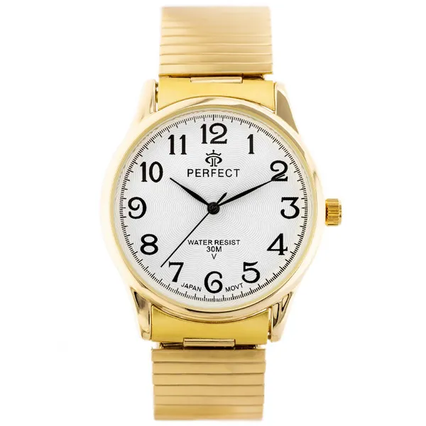 • Férfi кварc karóra fehér számlappal, aranyszínű fém szíjjal
