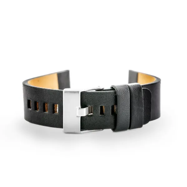 • Fekete valódi bőr óraszíj ezüst csattal 20 mm