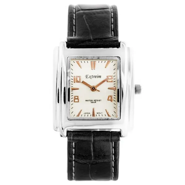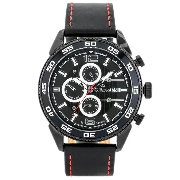 • Férfi kvarc karóra fekete bőrszíjjal, fekete számlappal