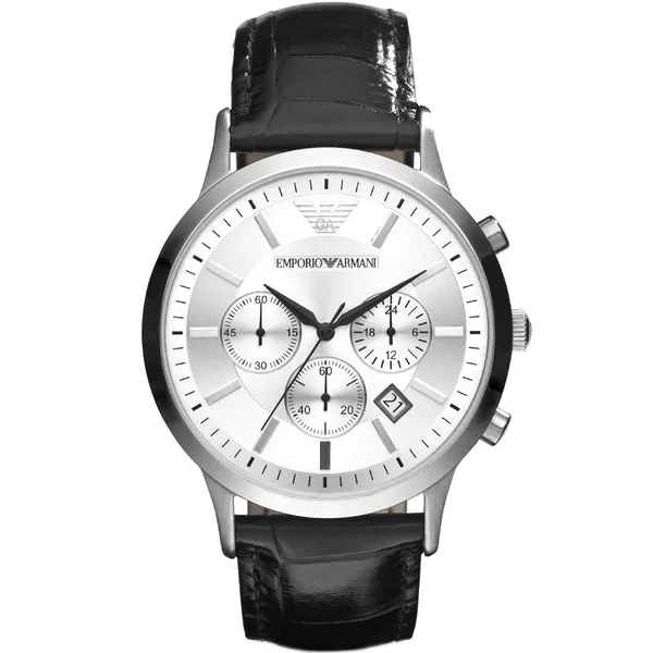 • Emporio Armani AR2432 Renato férfi karóra, ezüst-fekete, bőrszíj