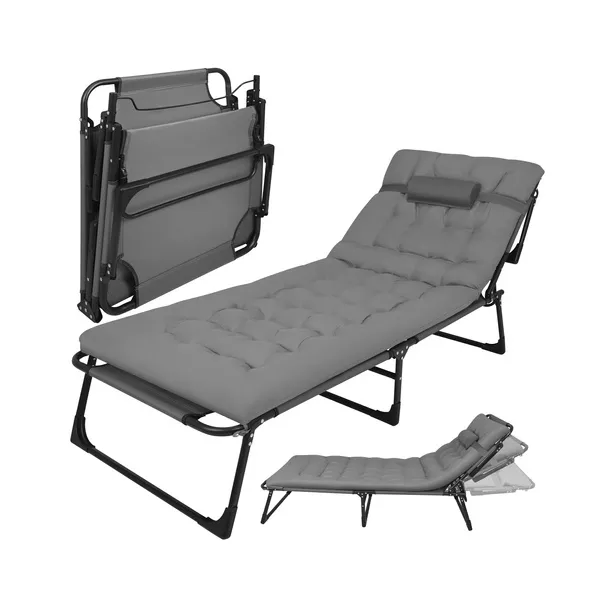 • Összecsukható kerti nyugágy párnával 192x68x28 cm, szürke