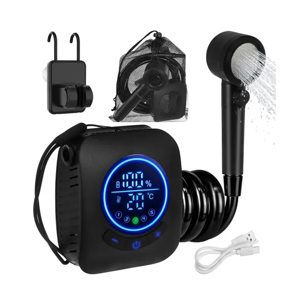 • Trizand hordozható kempingzuhany 8000 mAh, USB, IPX8, LED kijelző
