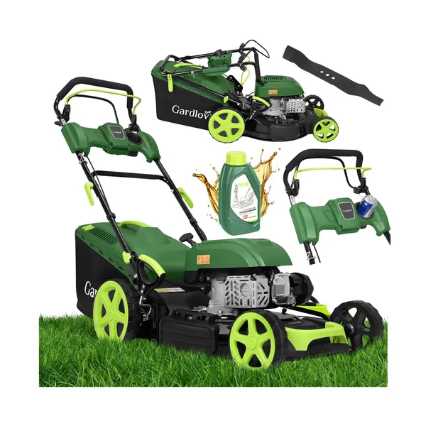 • Önjáró benzines fűnyíró 196 cm³, 51 cm, 60 l, 4 az 1-ben