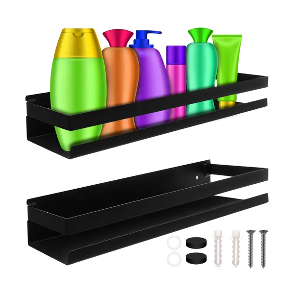 • Fekete rozsdamentes acél fürdőszobai polc 50 cm, falra szerelhető