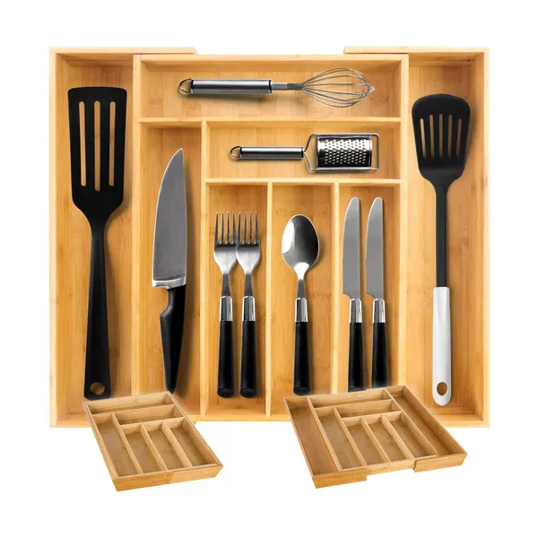 • Bambusz bővíthető evőeszköztartó fiókbetét, 6–8 rekeszes