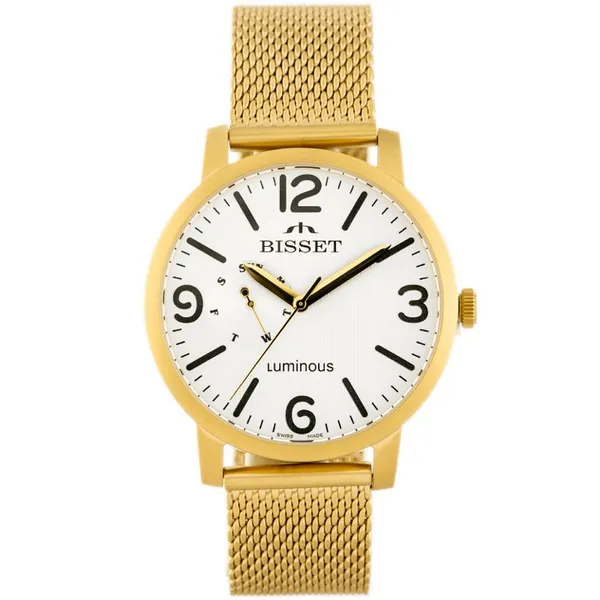 • Férfi aranyszínű кварc karóra, ezüst számlappal, dátum kijelzéssel