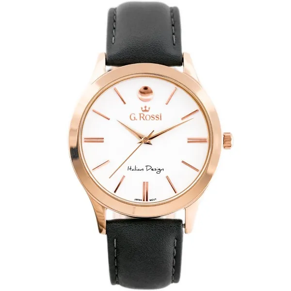 • Női kvarc karóra bőrszíjjal, fehér számlappal, rózsaarany