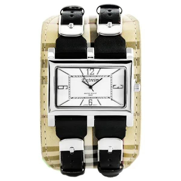 • Női téglalap alakú кварc karóra ezüst számlappal, fekete szíjjal
