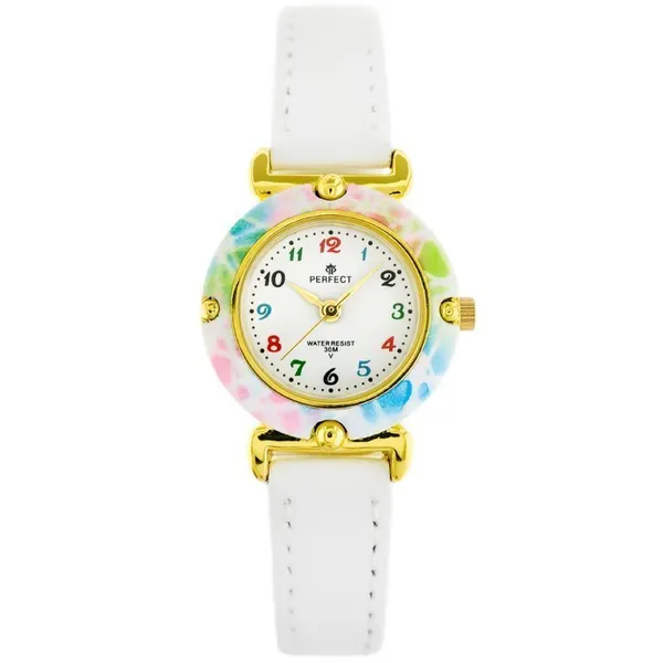 • Perfect lány karóra fehér bőrszíjjal, aranyszínű tokkal