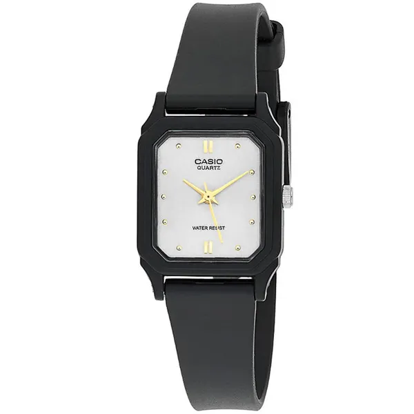 • Casio női kvarc karóra, ezüst számlap, fekete műanyag szíj