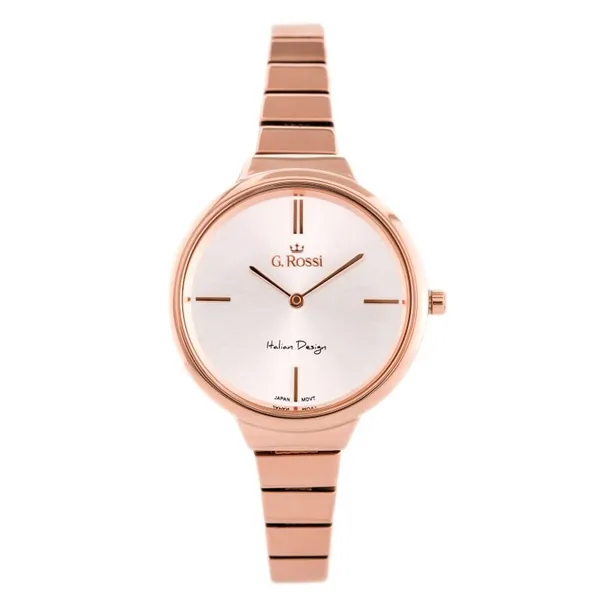 • Női kvarc karóra ezüst számlappal, rozéarany acél szíjjal