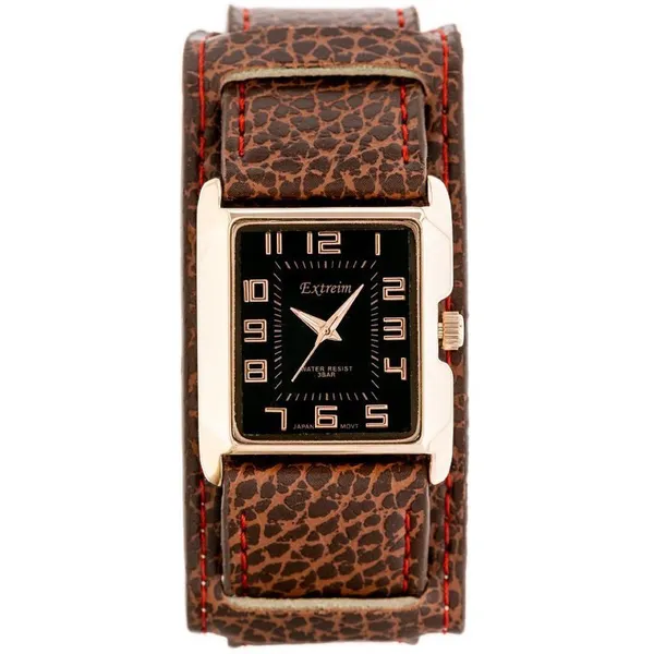• Női кварc karóra téglalap alakú fekete számlappal, barna szíjjal