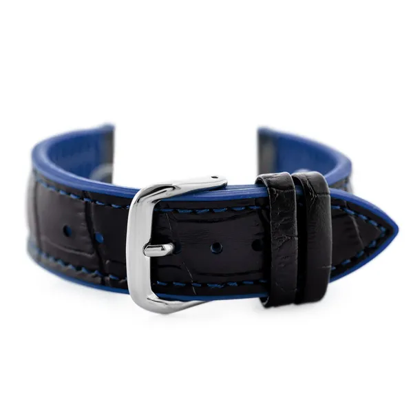 • Sötétkék-fekete gumióraszíj gyorskioldóval, 22 mm