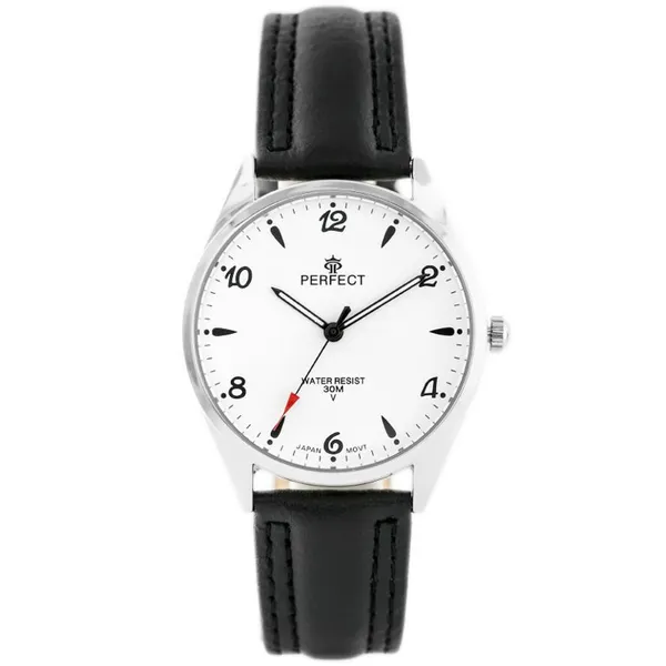 • Férfi кварc karóra fehér számlappal, fekete bőrszíjjal, hosszú szíj