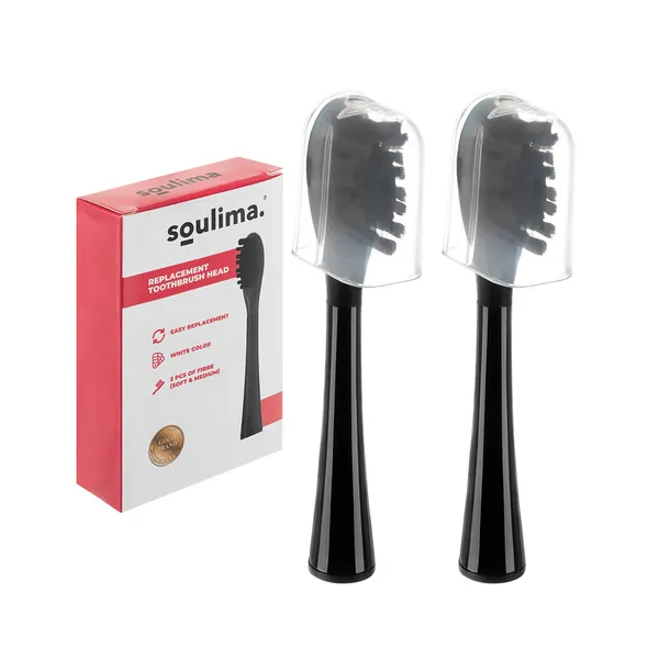 • Fekete pótfej Soulima X800 szónikus fogkeféhez, 2 db, soft+medium