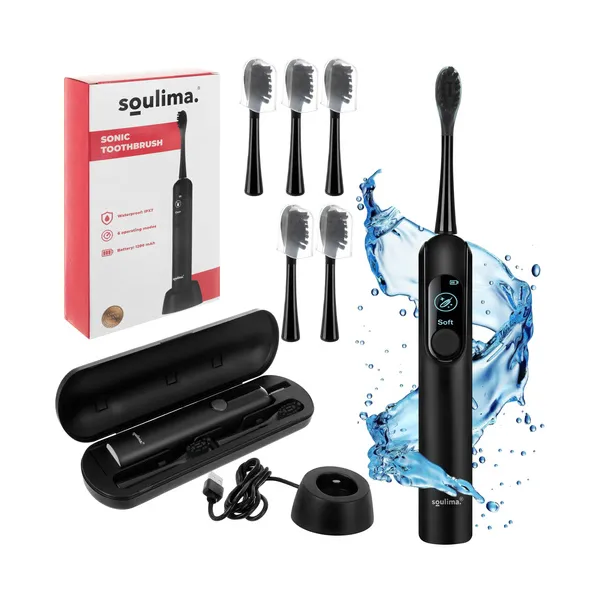 • Soulima X800 fekete szónikus fogkefe, 6 fejjel, indukciós töltéssel
