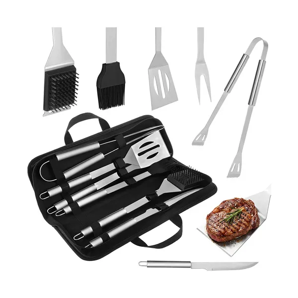 • 5 részes rozsdamentes grill eszközkészlet tokkal