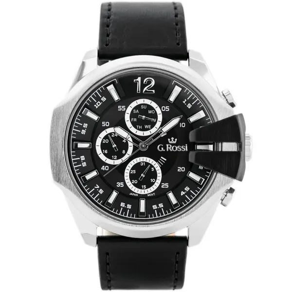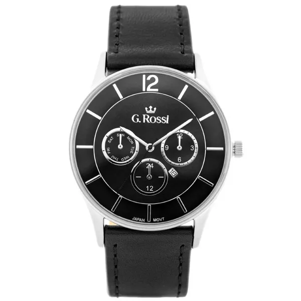 • G. Rossi férfi kvarc karóra fekete bőrszíjjal, dátummal