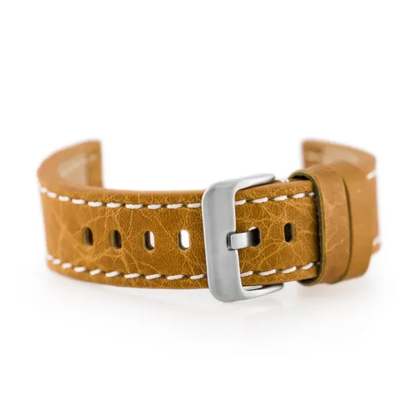 • Világosbarna valódi bőr óraszíj, 20 mm, fehér varrással