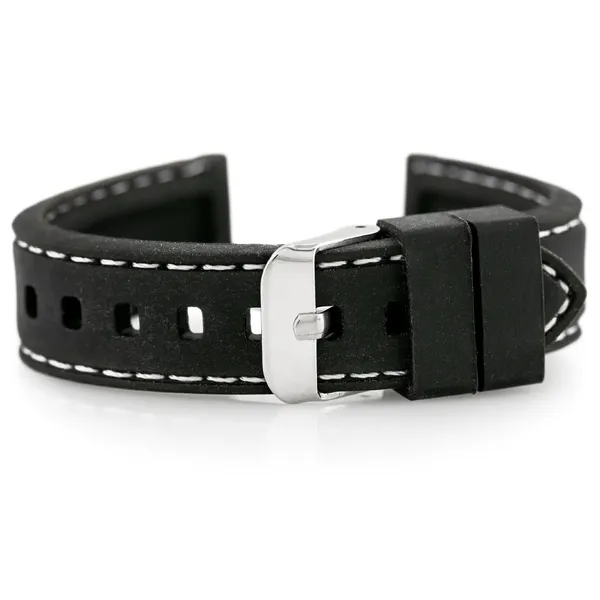 • U20 fekete gumióraszíj fehér varrással, 18 mm