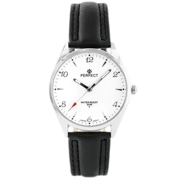 • Férfi кварc karóra hosszú fekete bőrszíjjal, ezüst számlappal