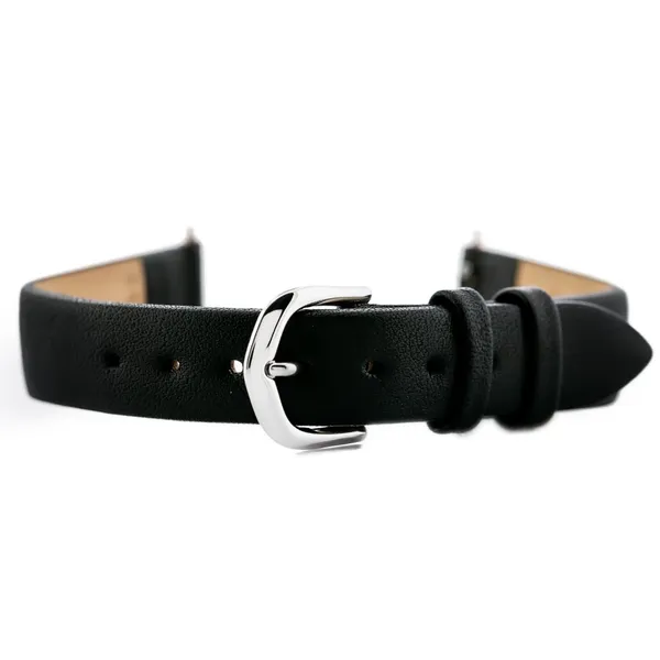 • Bisset fekete természetes bőr óraszíj 14 mm ezüst csattal