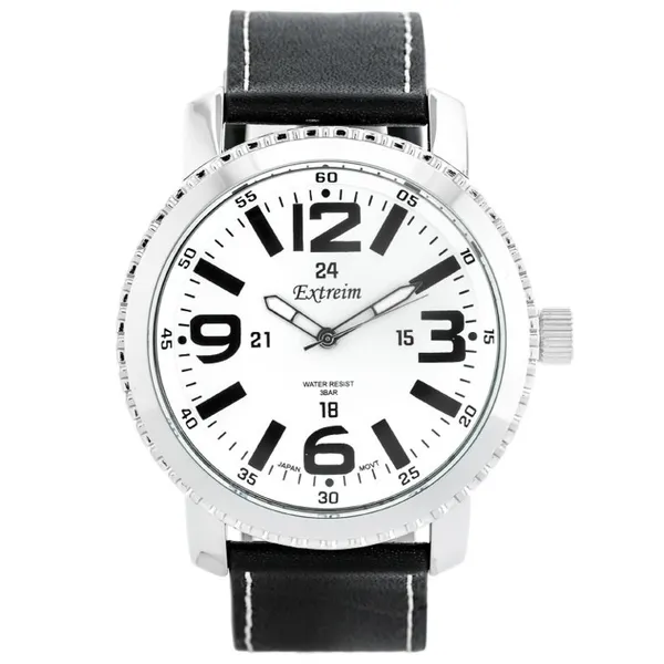 • Férfi karóra fehér számlappal, fekete szíjjal, Miyota kvarc